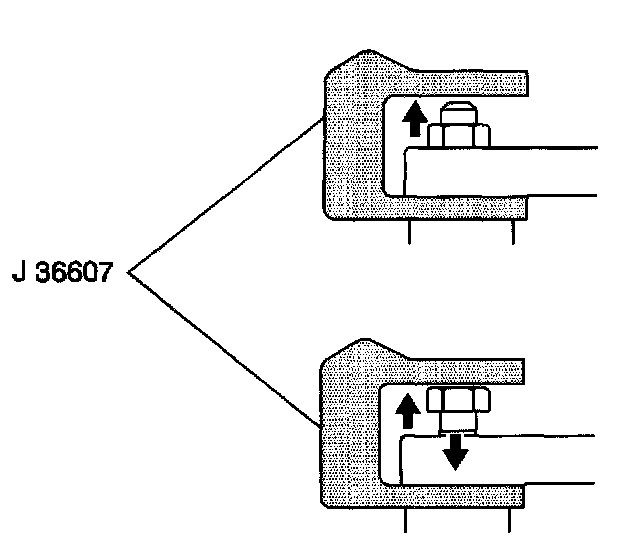 11. Disconnect the ball joint from the knuckle using the J 36607. Support the knuckle.