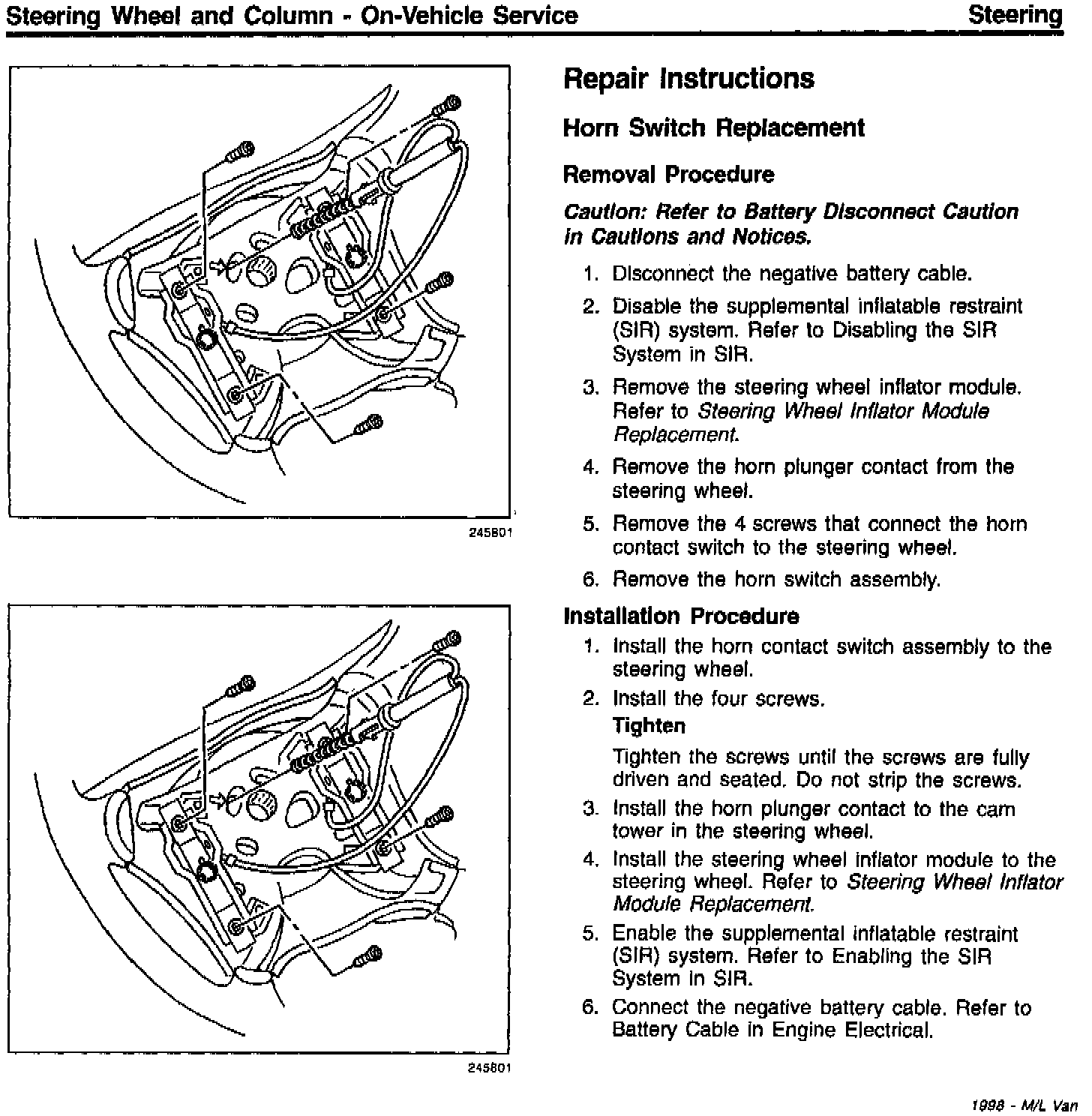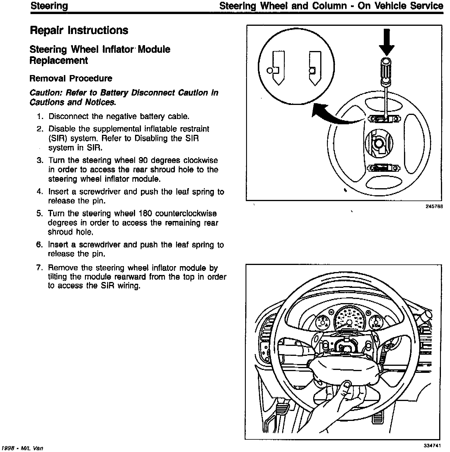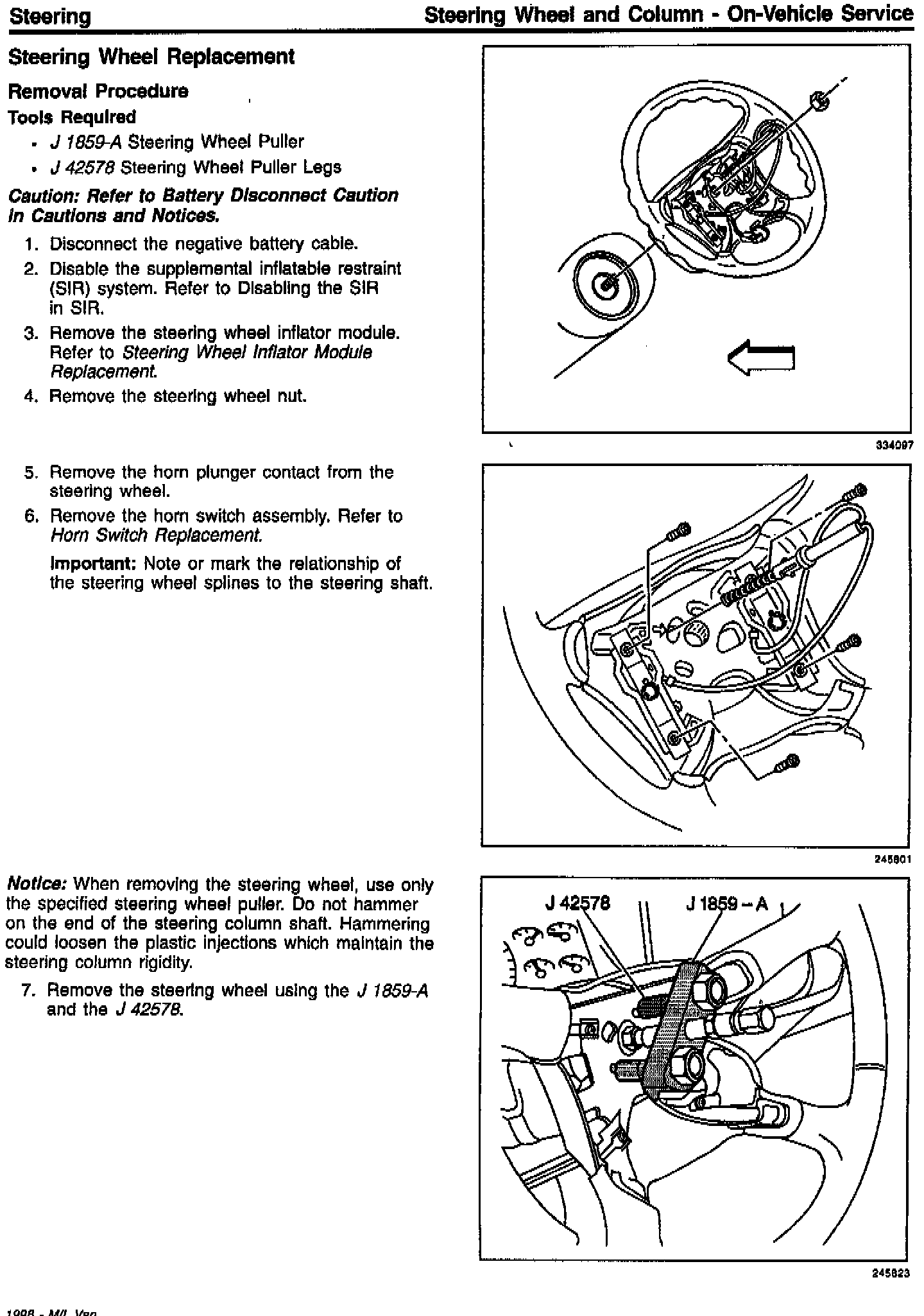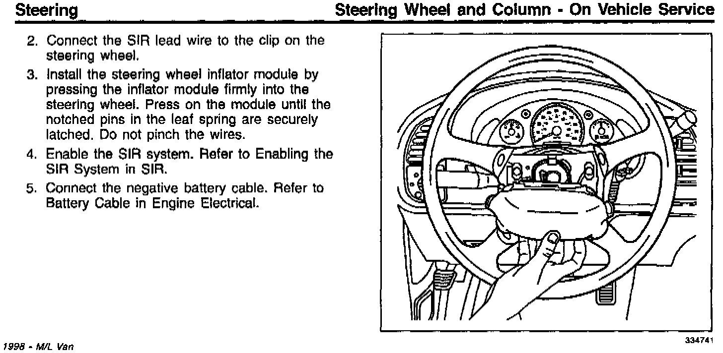 Section 2F Steering Wheel and Column On Vehicle Service New Removal/Installation Procedure for 1998 Next Generation Air Bag (RPO CTF)