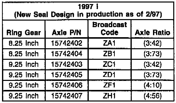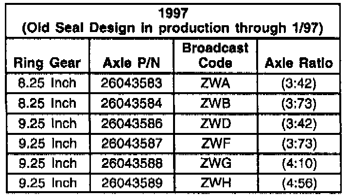 This bulletin is being revised to add 1997 K Truck Axle information. Please discard Corporate Bulletin Number 86-43-06 (Section 4 - Drive Axle).
