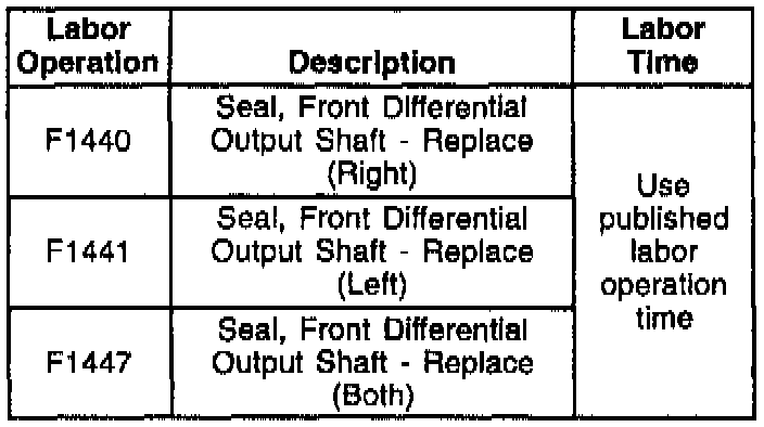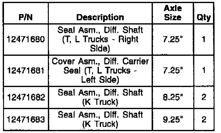 Engineering has released a new seal with revised seal material that improves the cold temperature flex capability. Replace the seals with the part numbers listed. Refer to the Front Drive Axle Section in the appropriate Service Manual.