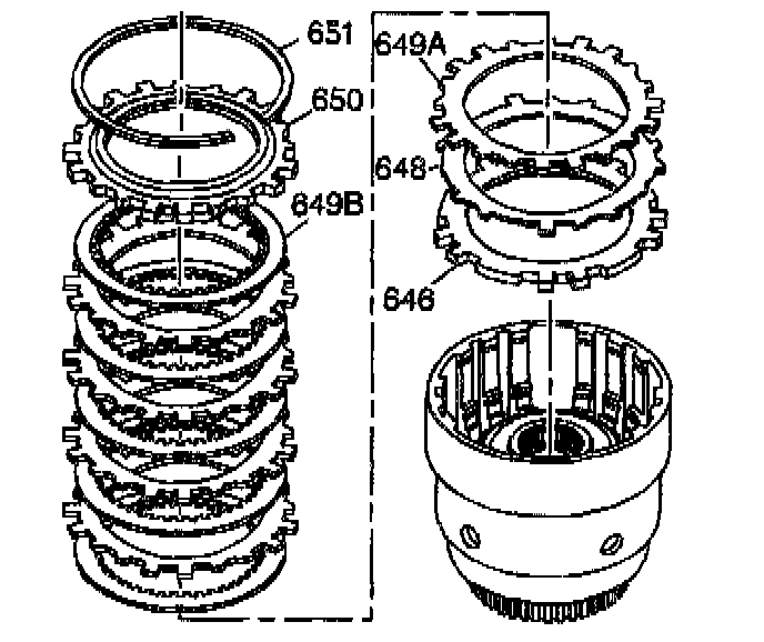 4. Install the forward clutch steel plate and alternate with the composition plates.