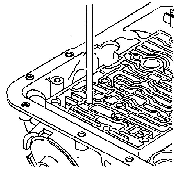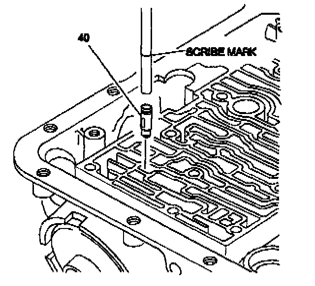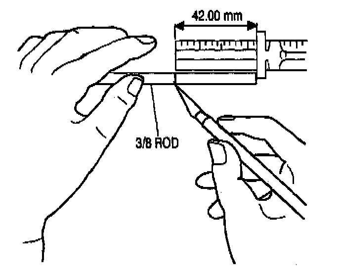 2. Using the metal rod, scribe a mark at 42 mm (1.653 inch). The scribe mark is used to gage the proper depth of the third accumulator retainer and the ball assembly.