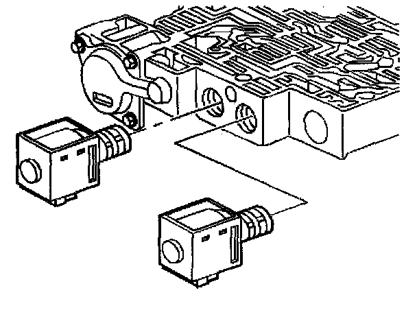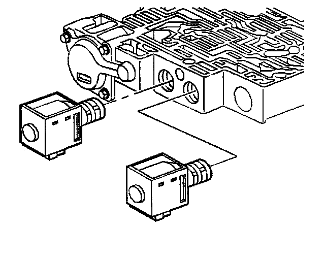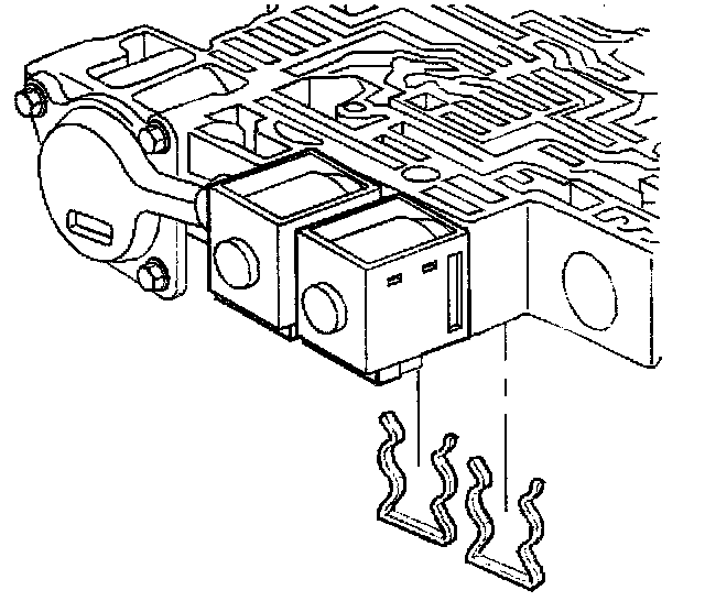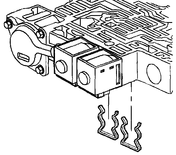Position the pressure control solenoid with the electrical tabs facing outboard.