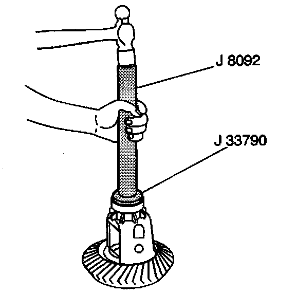 2.1. Position one pinion gear between the side gears. Rotate the gears until the pinion gear is directly opposite the opening in the case.