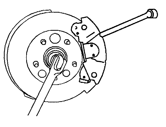 15. Insert a drift through the brake caliper and into a brake rotor vane to prevent the wheel drive shaft from turning.