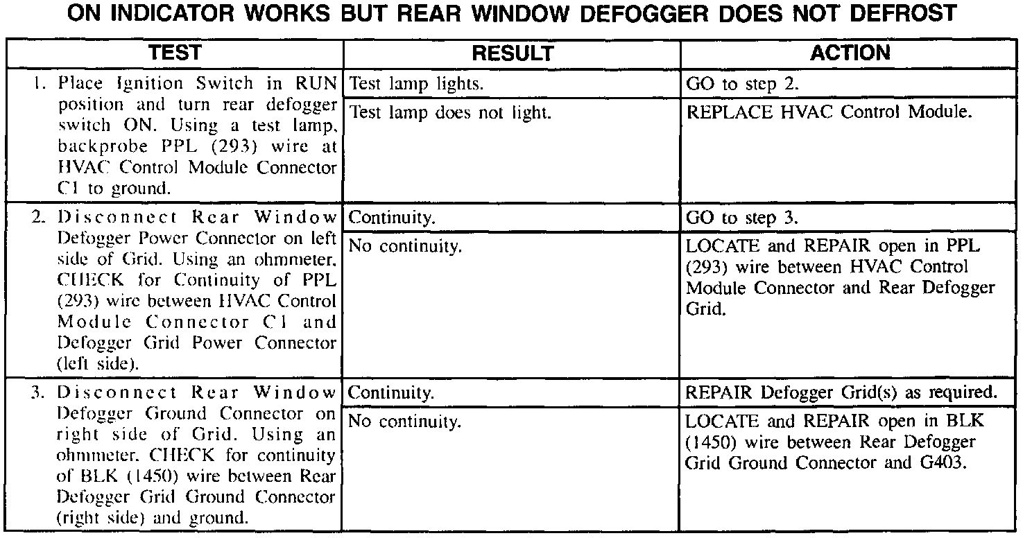 ON Indicator Works But Rear Window Defogger Does Not Defrost