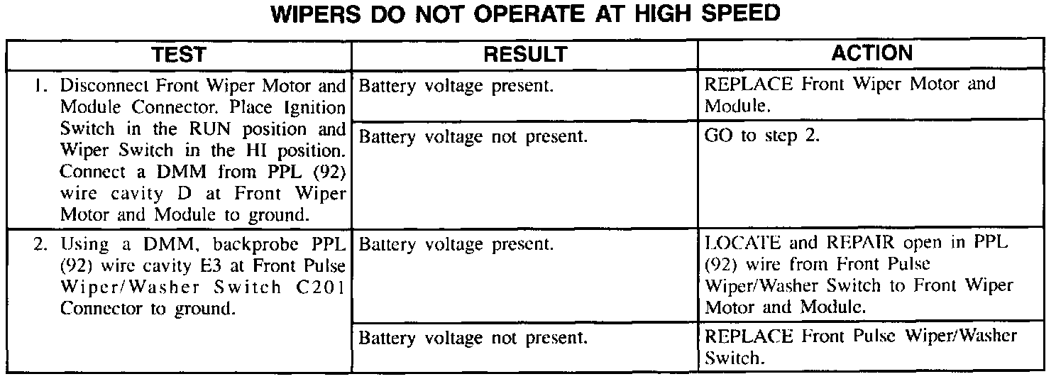 Wipers Do Not Operate at High Speed