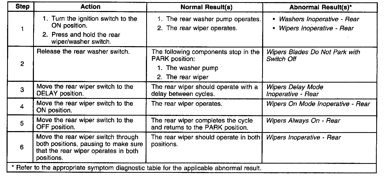 Wiper/Washer Rear System Check: