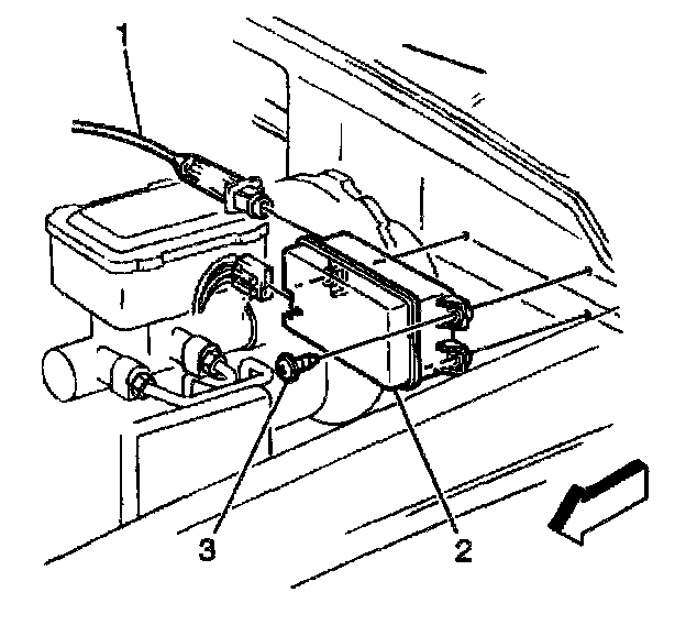 Remove the screws (3) retaining the cruise control module (2) to the cowl.