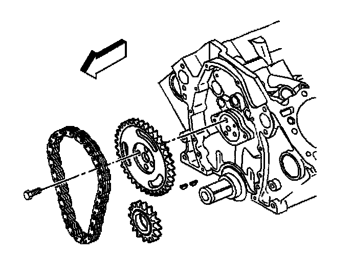 6. Remove the camshaft sprocket and the timing chain.