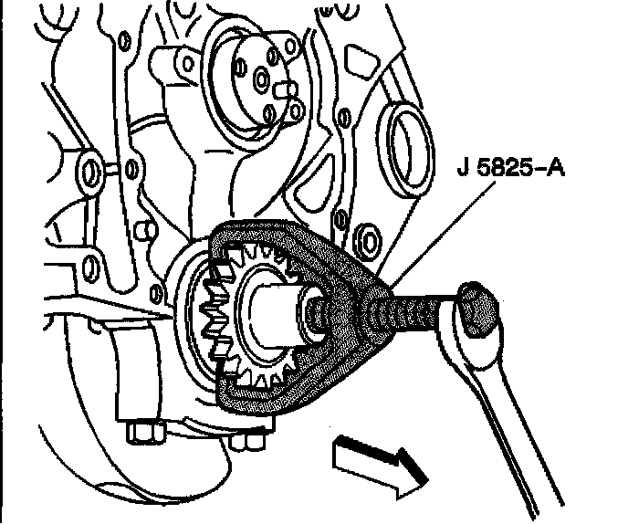 7. Use the J 5825-A in order to remove the crankshaft sprocket.