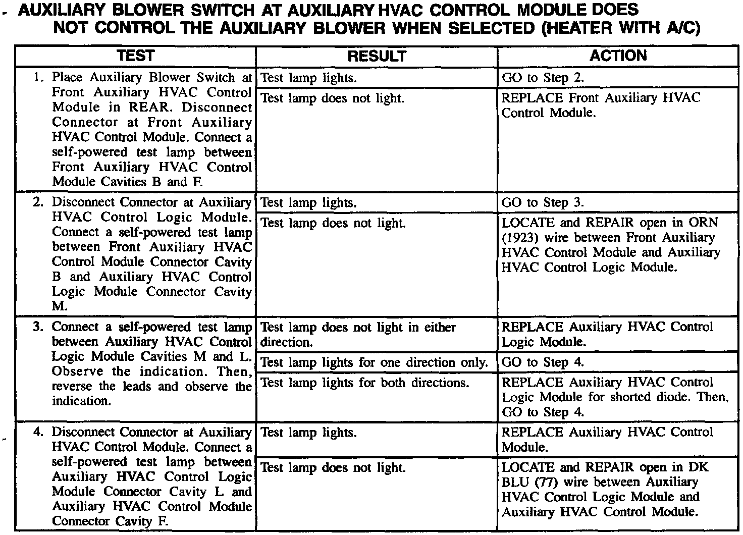 Auxiliary Blower Switch At Auxiliary Auxiliary HVAC Control Module Does Not Control (Heater With A/C):