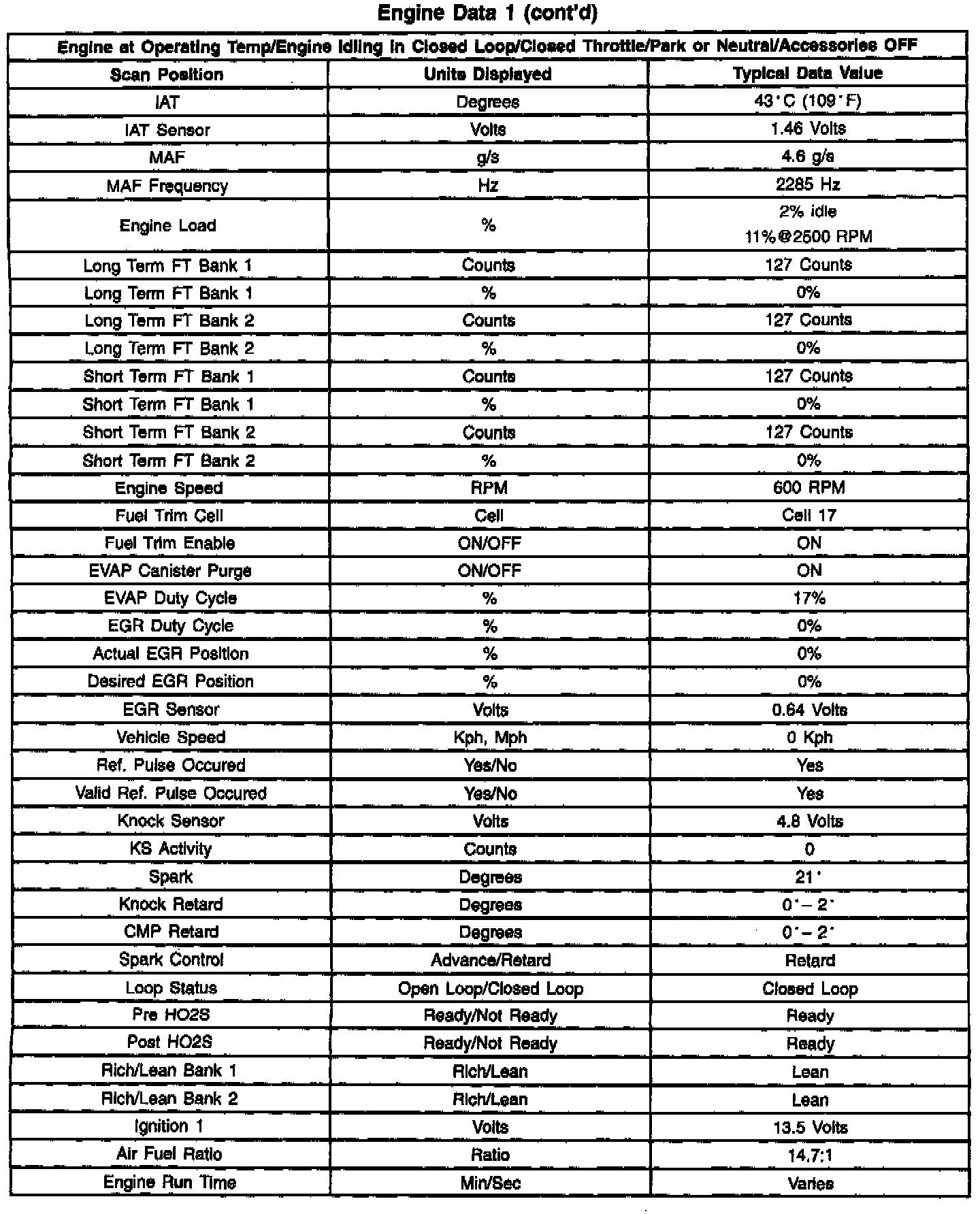Scan Tool Data List