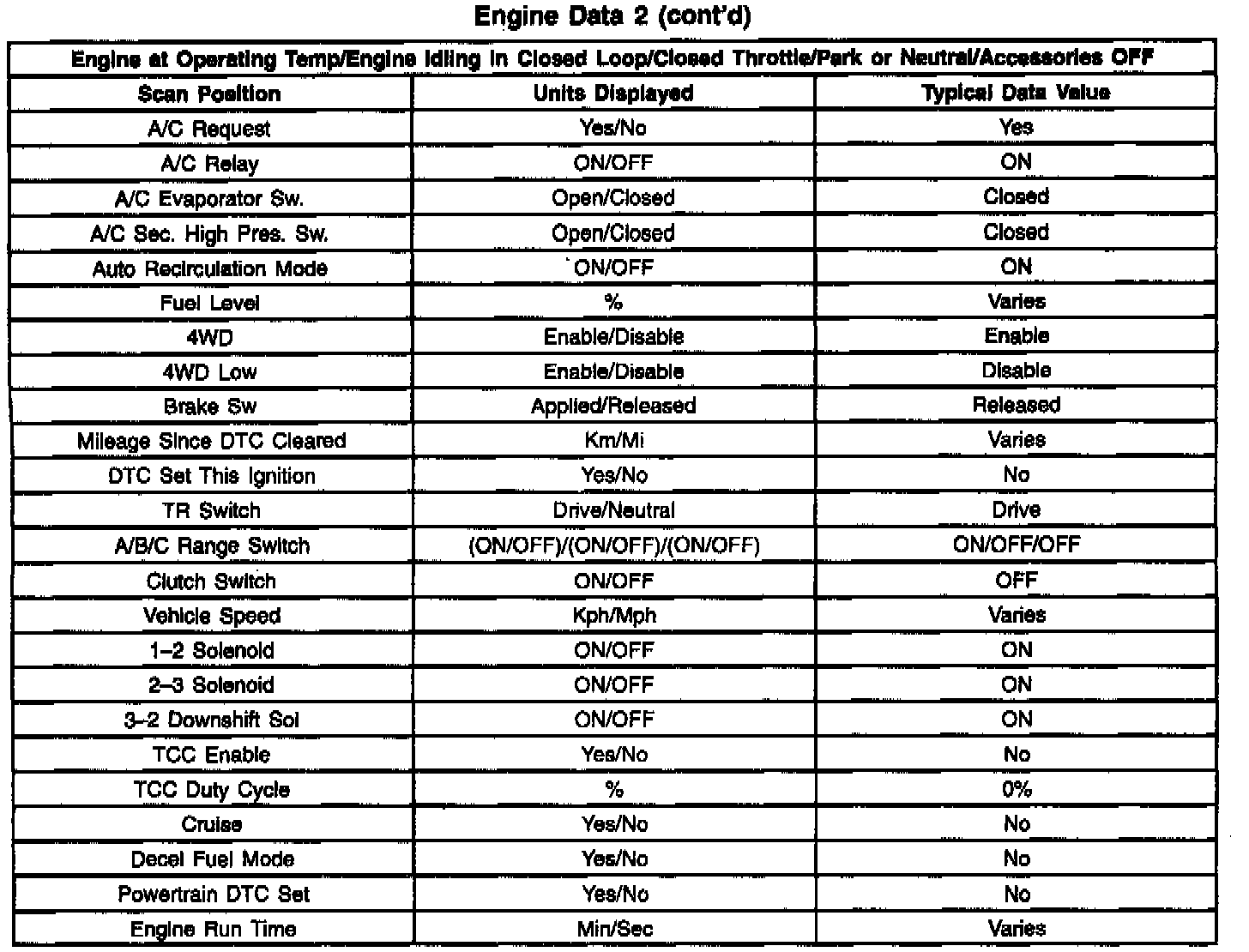 Scan Tool Data List