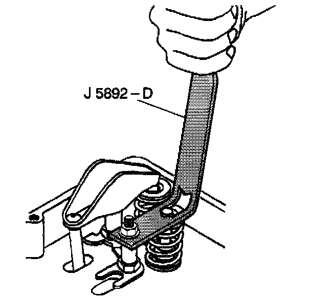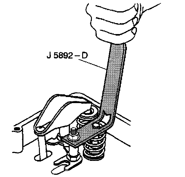 6. Use the J 5892-D in order to compress the valve spring.