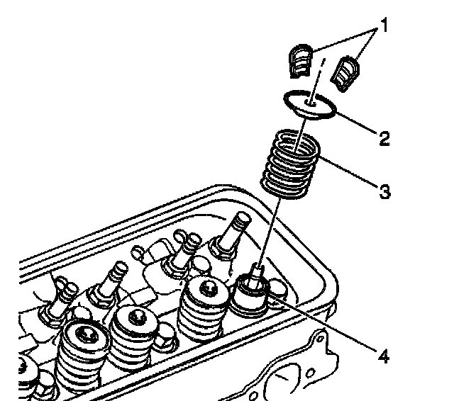 NOTICE: Make sure that the valve stem keys are properly seated in the valve spring cap. Engine damage could occur if not properly installed.
