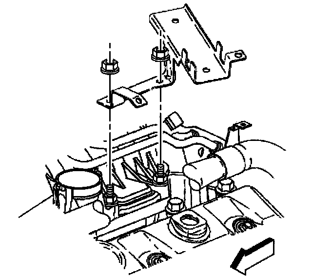 23. Install the left side bracket for the engine wiring harness on the lower intake manifold studs.
