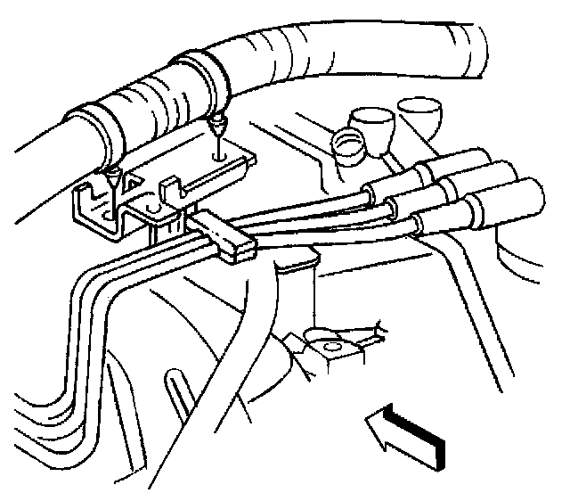 10. Install the spark plug wire harness retainer on the EGR valve inlet pipe.