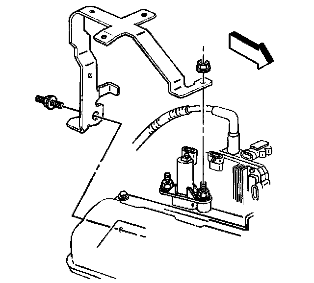 26. Install the right side engine wiring harness bracket on the EVAP canister purge solenoid valve stud.