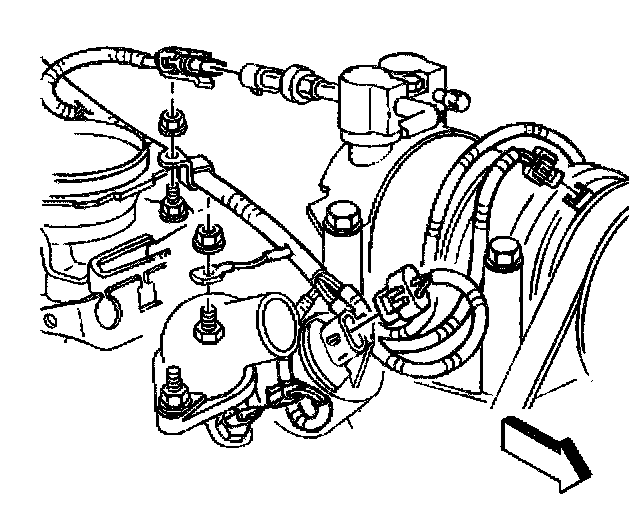 23. Remove the spark plug wire harness retainer from the EGR valve inlet pipe.
