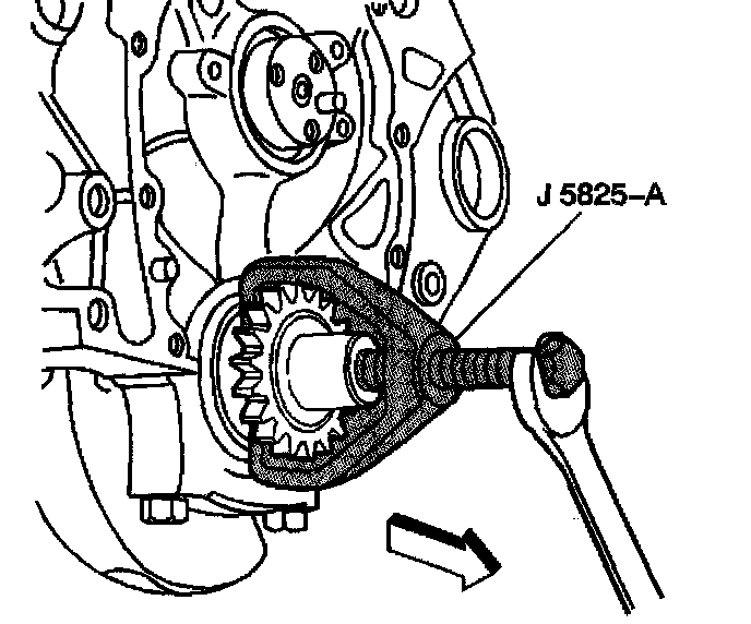 8. Use the J 5825-A in order to remove the crankshaft sprocket.