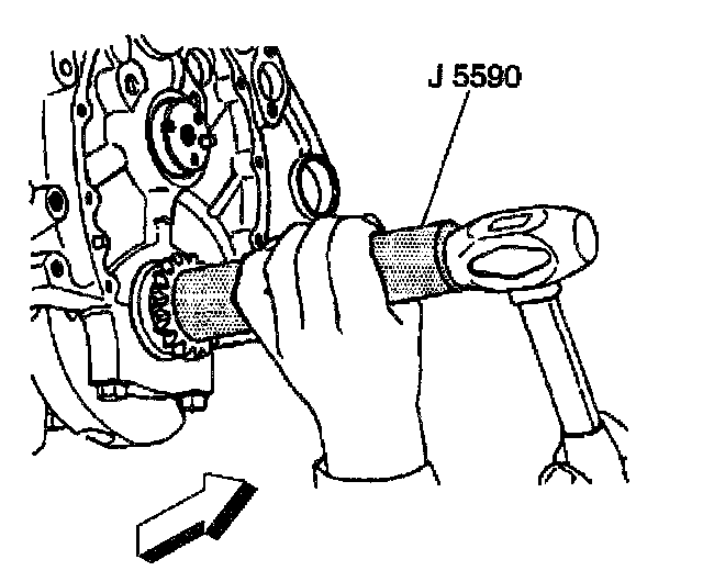 3. Use the J 5590 and a hammer in order to install the crankshaft sprocket.