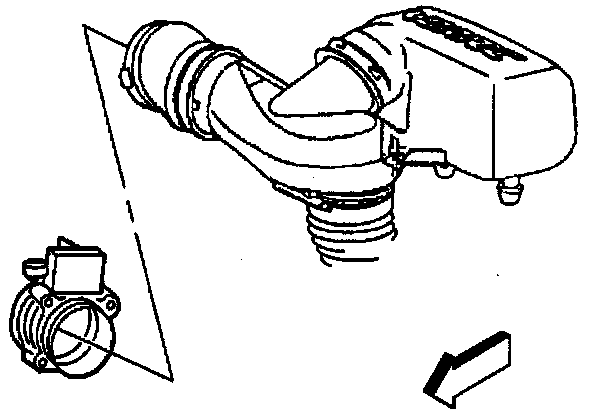 CAUTION: Take care when handling the Mass Air Flow (MAF). Do Not dent, puncture, or otherwise damage the honeywell located at the air inlet end of the MAF. Do Not touch the sensing elements or allow anything (including solvents and lubricants) to come in contact with them. A small amount of GM lubricant (P/N 99855406) may be used on the air duct only to aid in installation. Do Not drop or roughly handle the MAF.