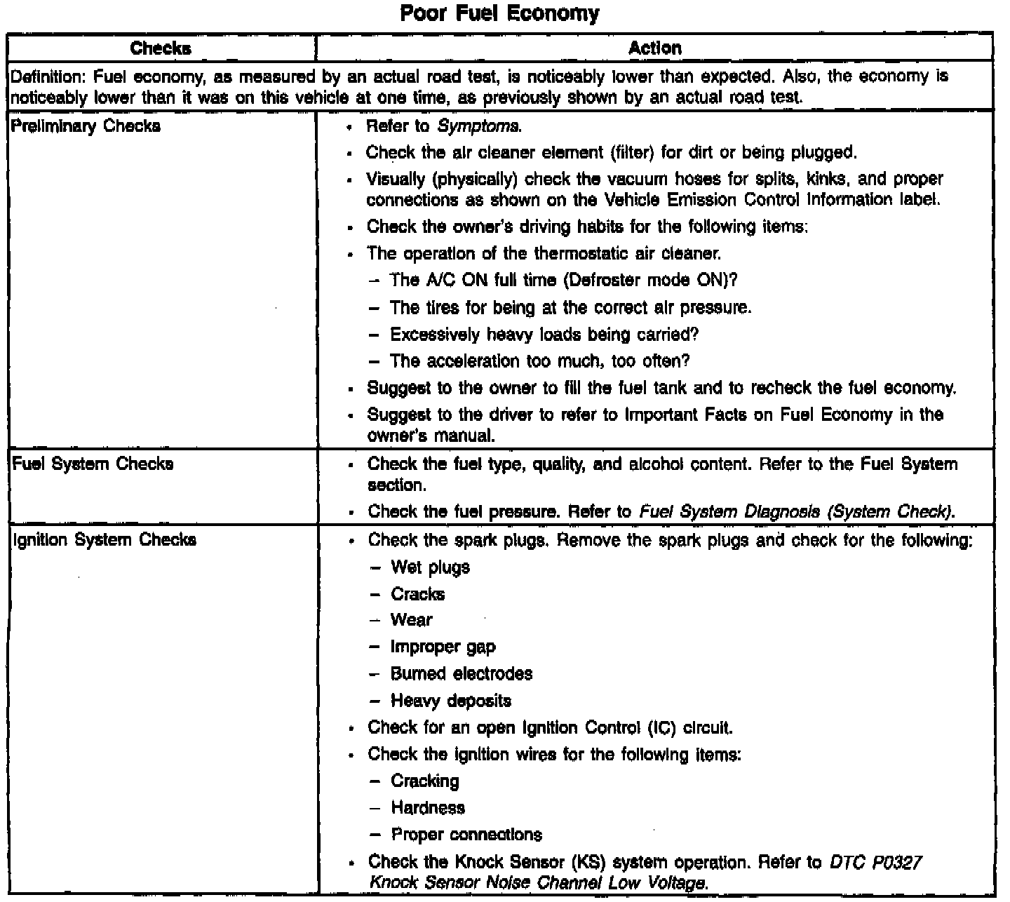 Poor Fuel Economy
