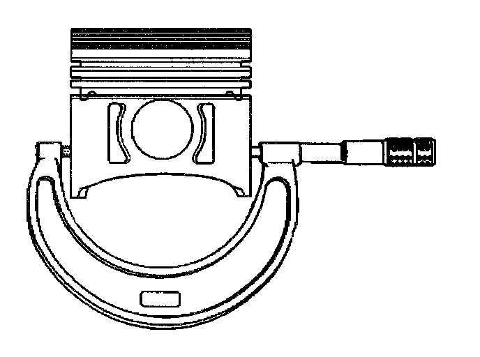 5. With a micrometer or caliper at a right angle to the piston, measure the piston 11 mm (0.433 inch) from the bottom of the skirt.