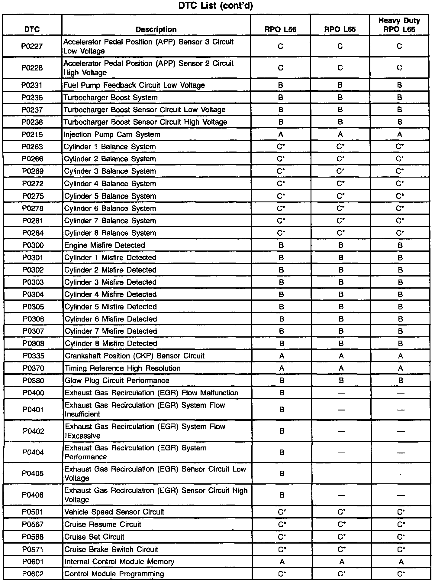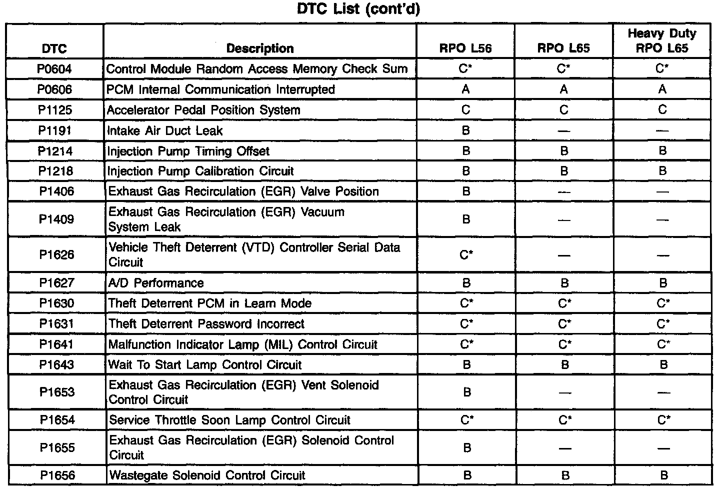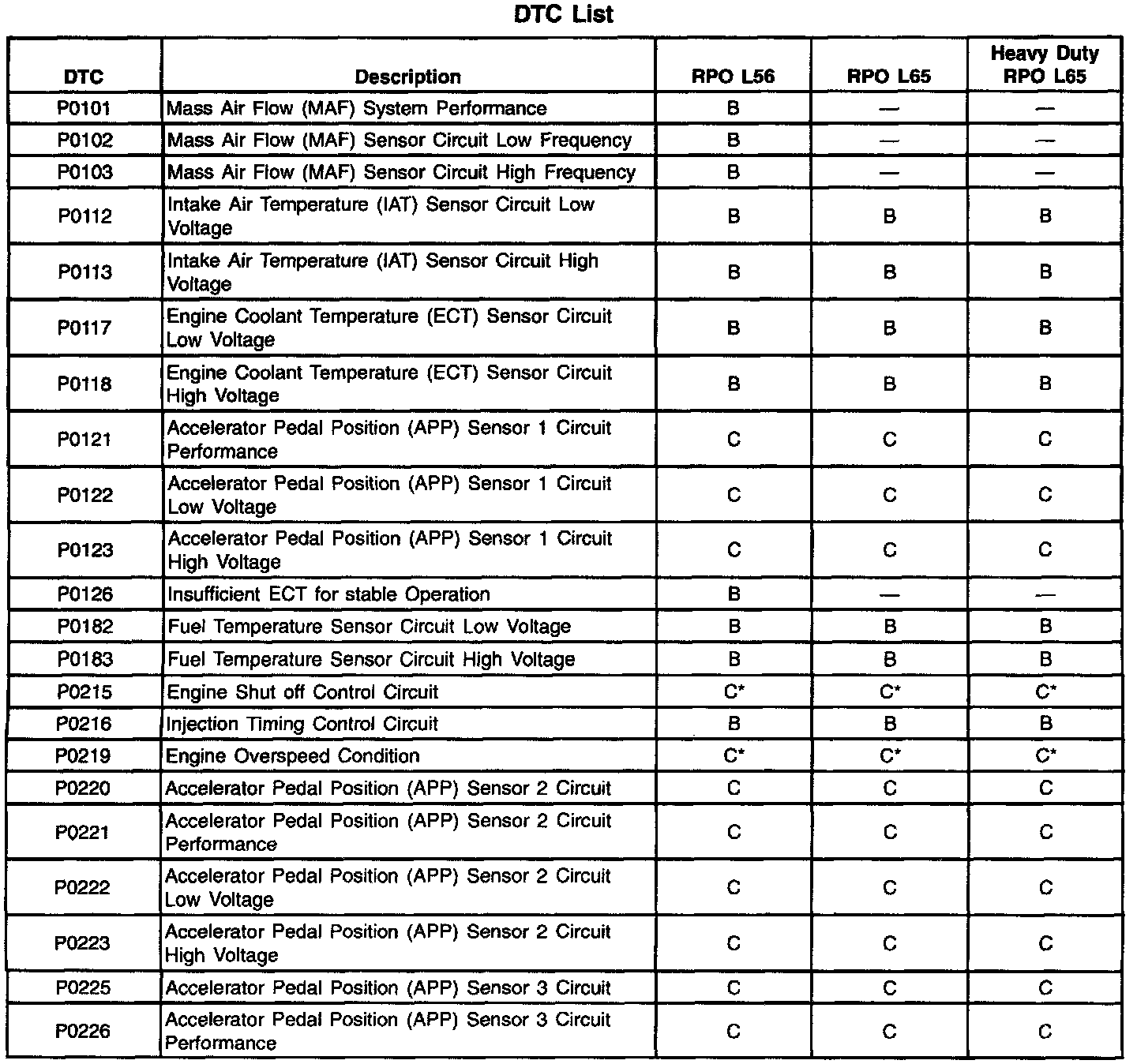 Important: For Automatic Transmission DTC types, refer to Automatic Transmission. Diagnostic Trouble Code Descriptions