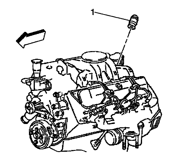 7. Using the J 41712 Oil Pressure Sending Unit Socket, remove the oil pressure sending unit (1).