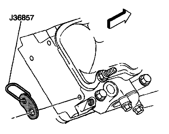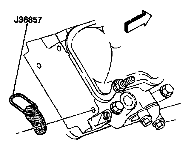 NOTICE: Refer to Damage May Result From The Use Of An Improper Bolt When... in Service Precautions.1. Install J 36857 along with GM P/N 94282217 bolt and GM P/N 15650963 washer to the right rear cylinder head.
