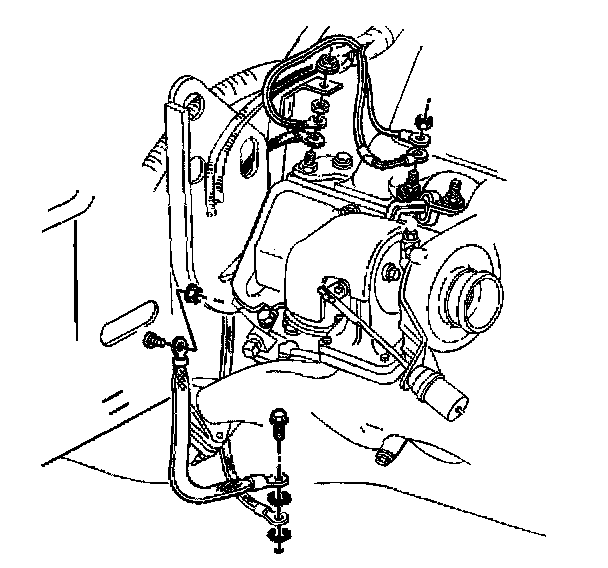 14. Remove the ground straps from the right rear cylinder head and body.