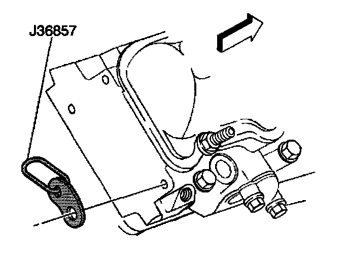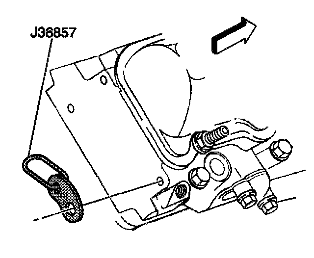 17. Install J 36857 along with GM P/N 94282217 bolt and GM P/N 15650963 washer to the right rear cylinder head.