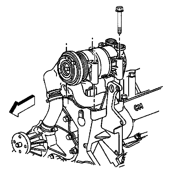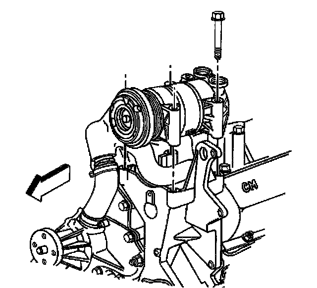 8. Install the A/C compressor to the mounting bracket and reposition to the side.