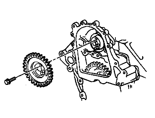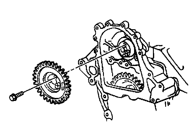 14. Install the fuel pump drive gear to the camshaft and align the timing marks.