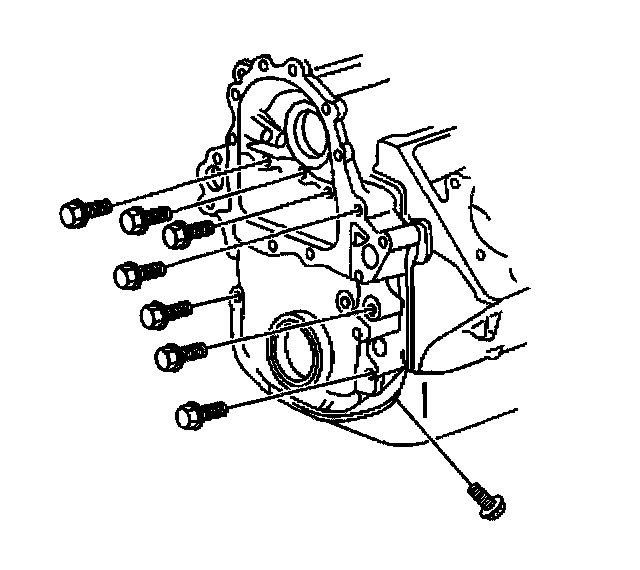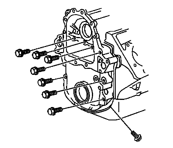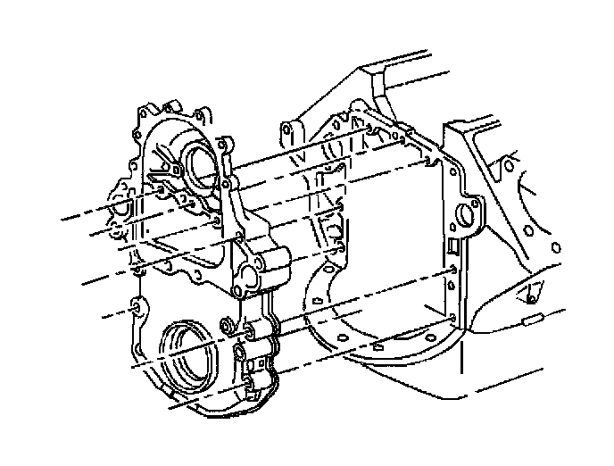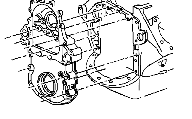 18. Remove the bolts from the engine front cover and the oil pan.
