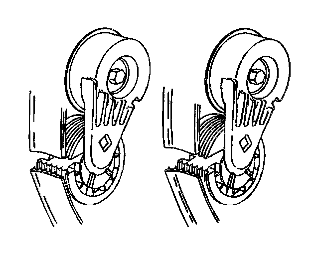 3. When installing a used drive belt, observe the indicator on the tensioner.