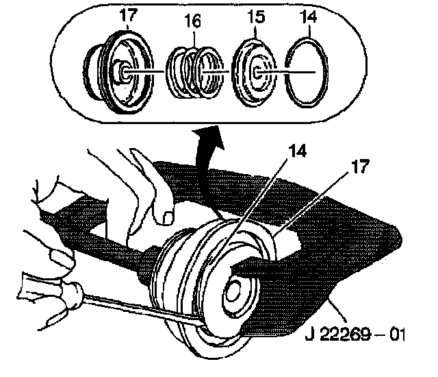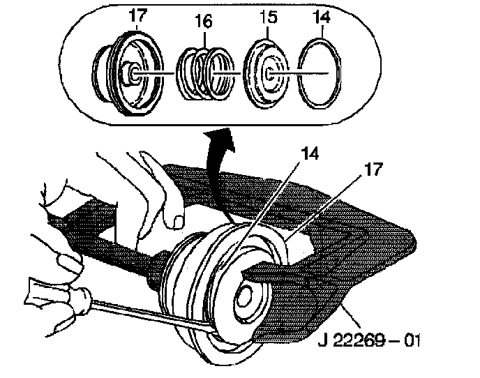 2. Install the servo cushion spring and the cushion spring retainer in the 2nd apply piston. Use the J22269-01 in order to compress the second apply piston.
