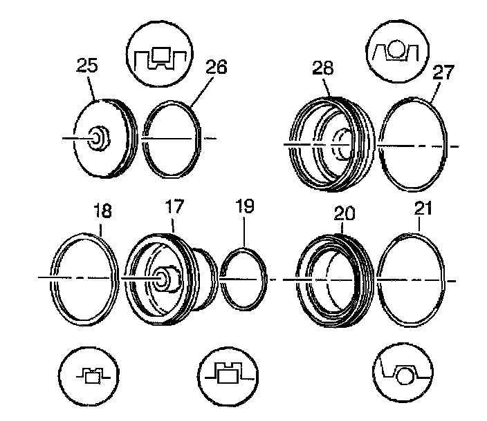 1. Install new seals on all the 2-4 servo pistons and the cover.