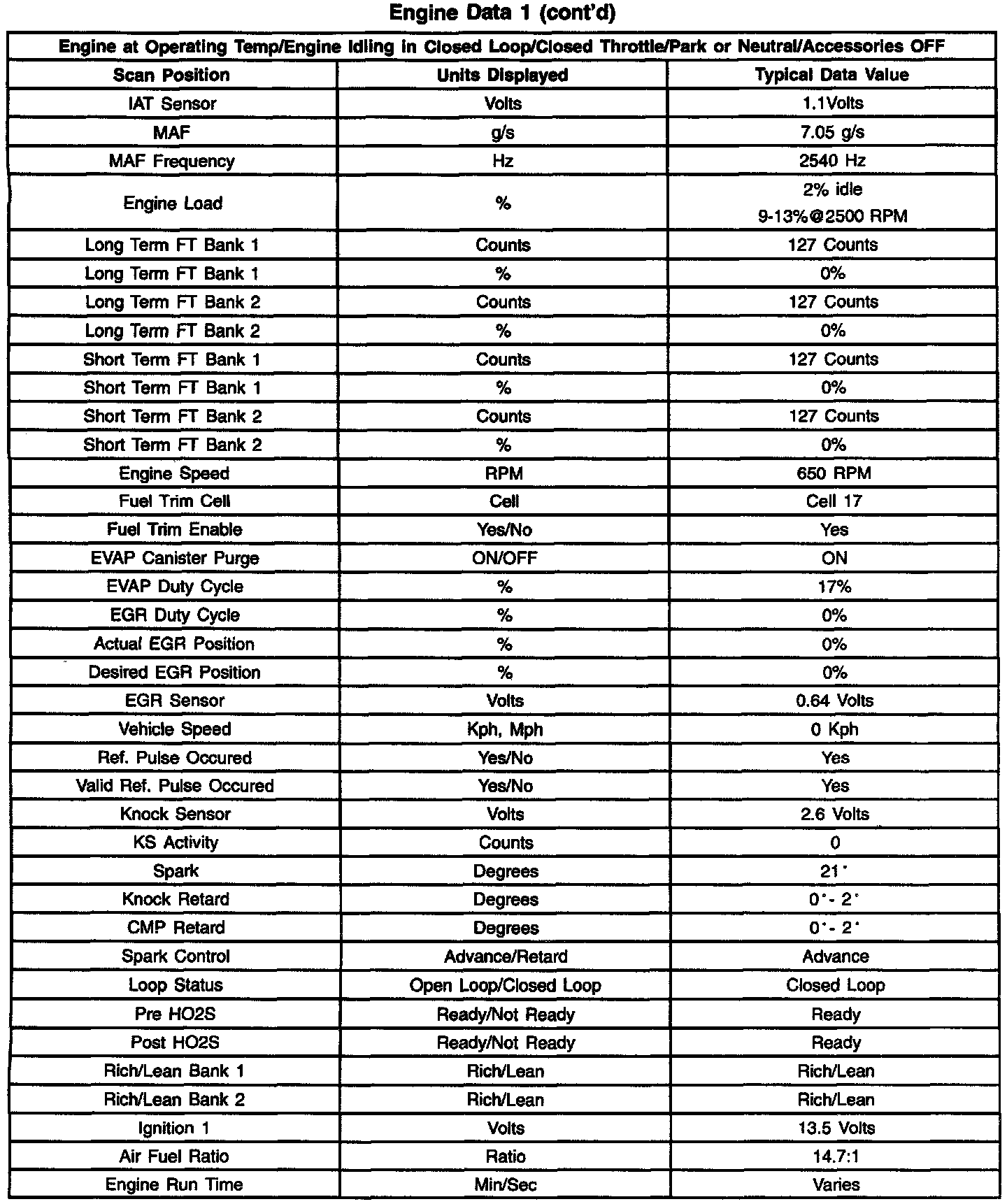 Scan Tool Data List