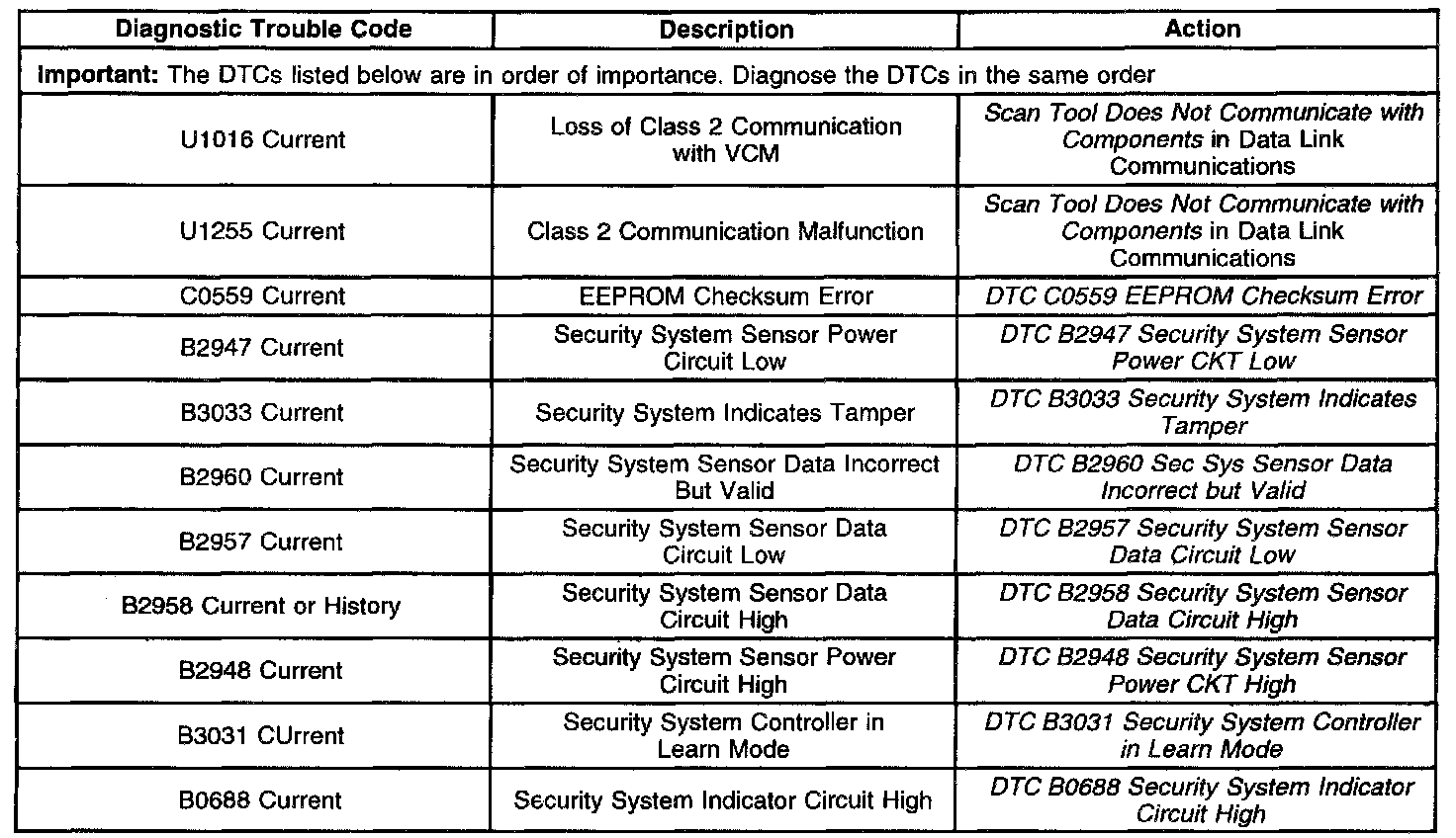 Diagnostic Trouble Code Descriptions