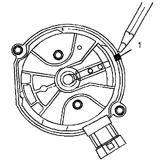 8. Use a grease pencil in order to note the position of the rotor in relation to the distributor housing (1).