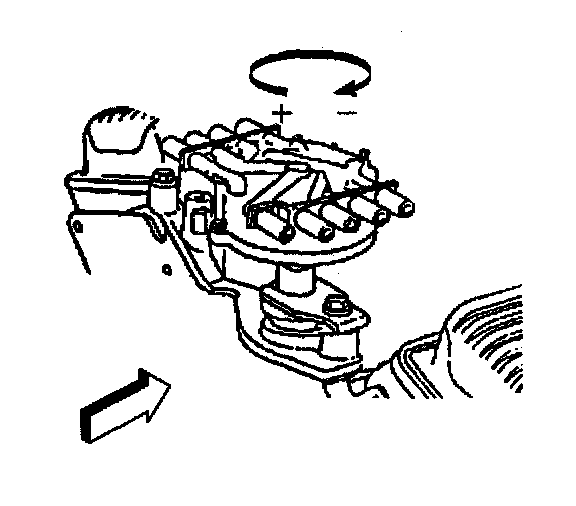 6. As the distributor is being installed, observe the rotor moving in a clockwise direction about 42 degrees.