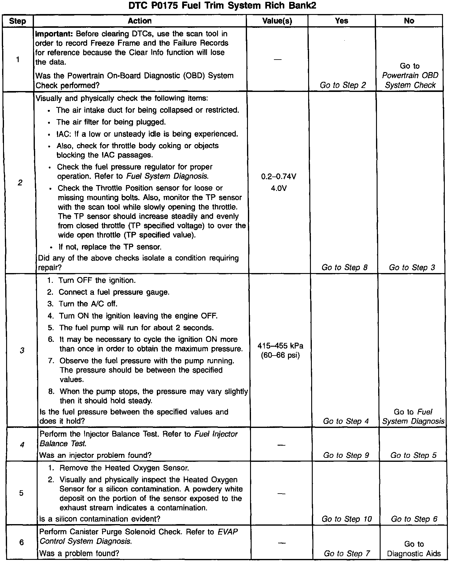 2. Visually and physically checking items which may cause a rich condition may determine the cause of the DTC P0175 being set.