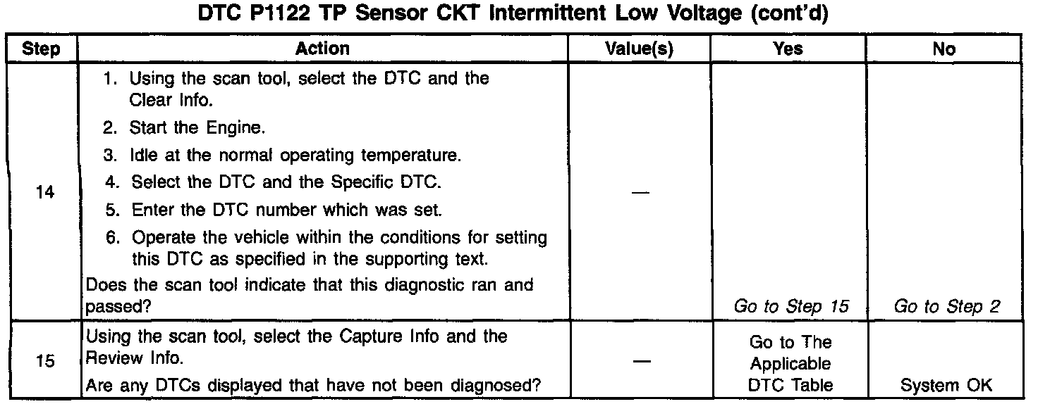 An open or short to ground in the 5 volt reference circuit or the TP sensor signal circuit results in a DTC P0122.