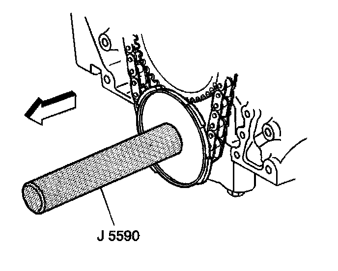 3. Use the J 5590 in order to install the crankshaft sprocket.
