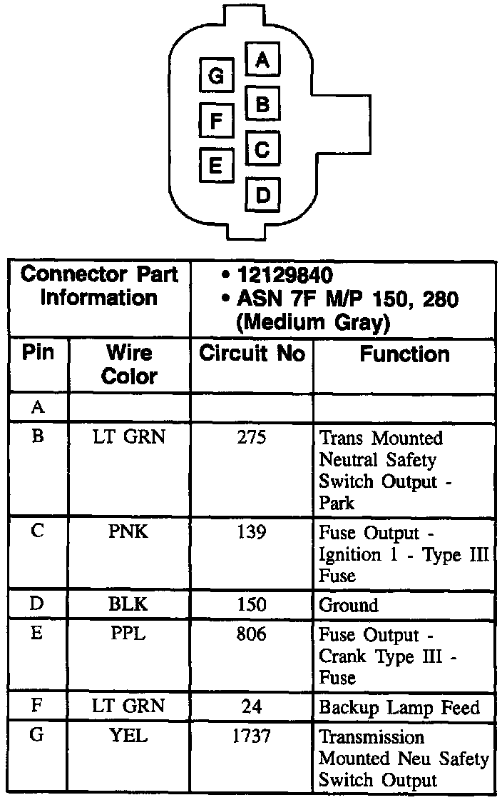 Park/Neutral Position Switch, C1 Connector: