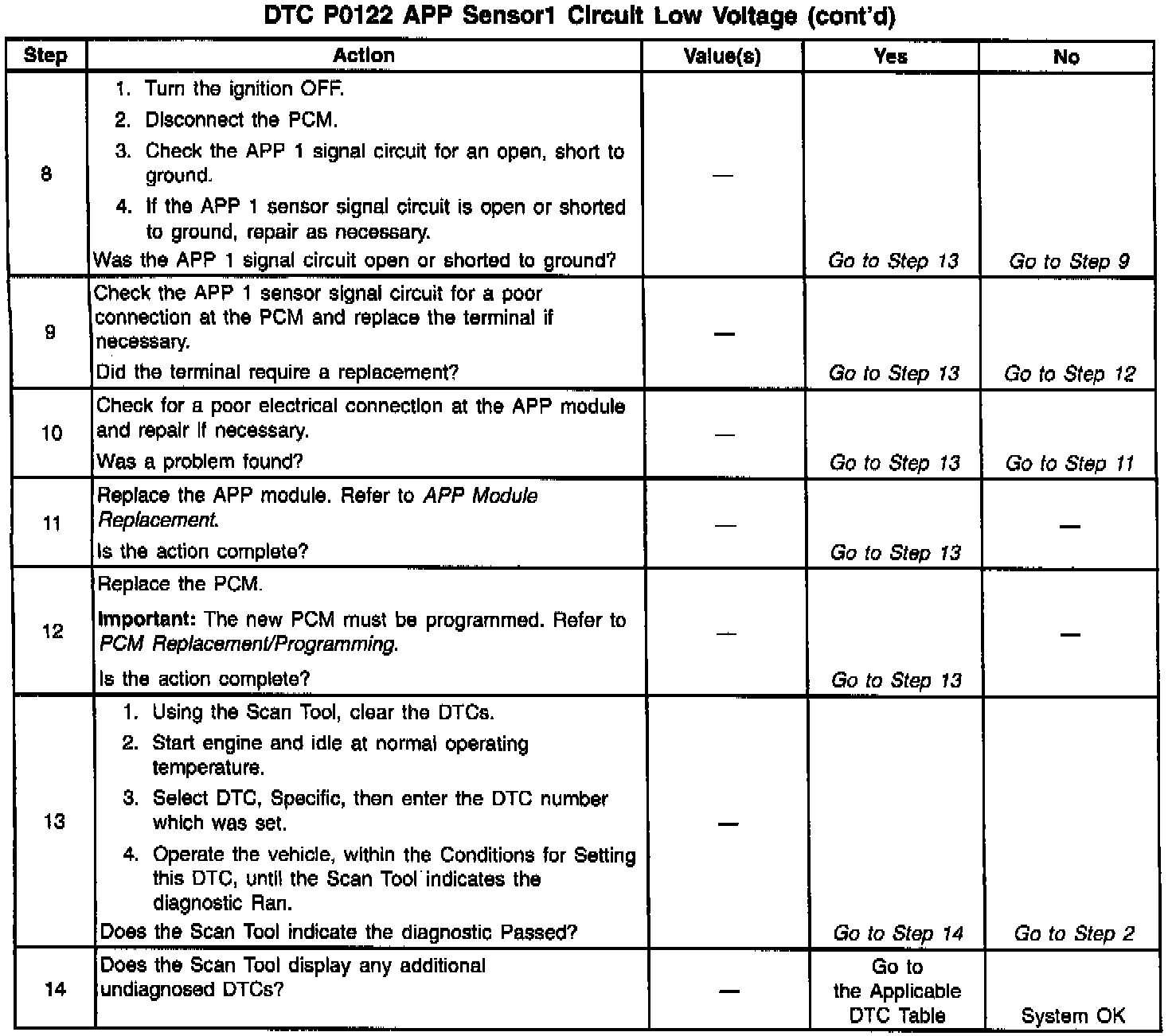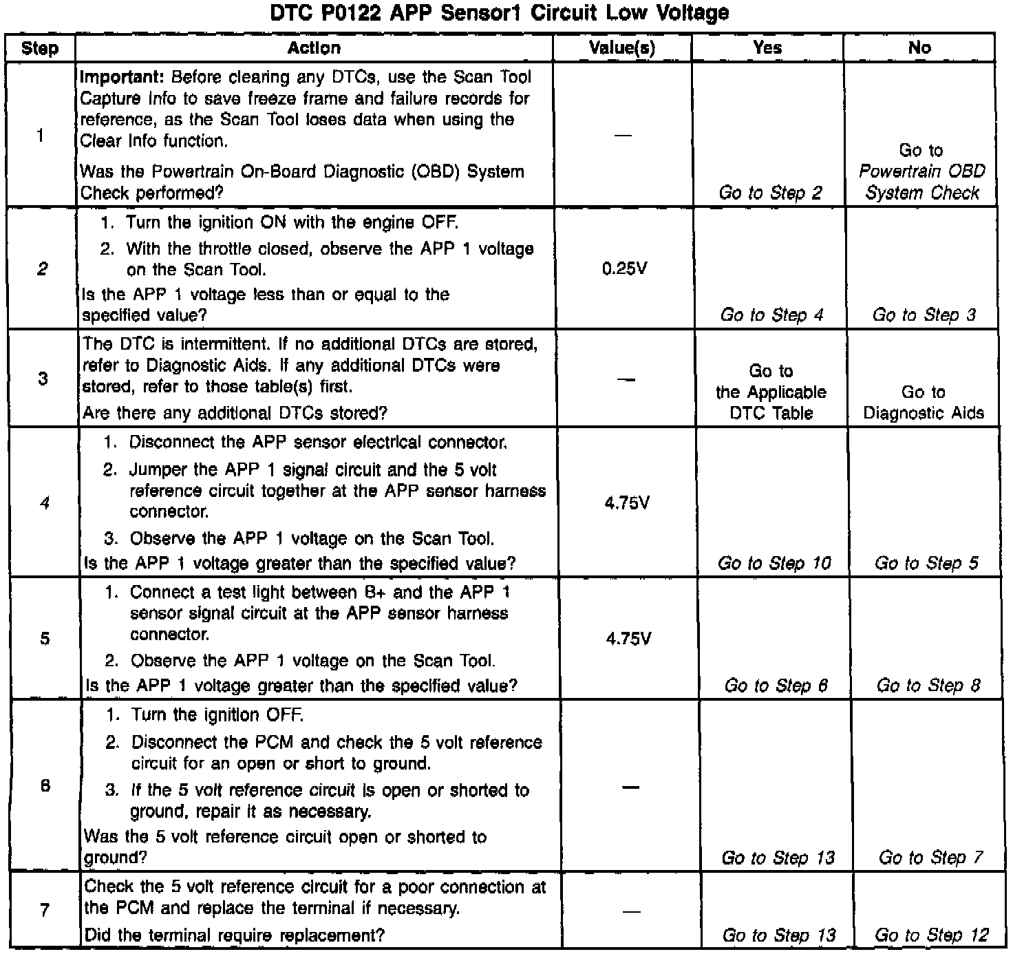 ^ The Service Throttle Soon lamp will not illuminate when one APP DTC sets. The PCM will only illuminate the Service Throttle Soon lamp when multiple APP DTCs set.