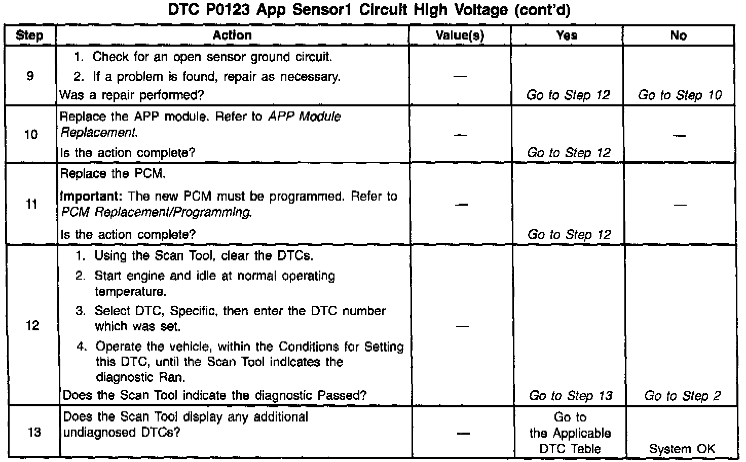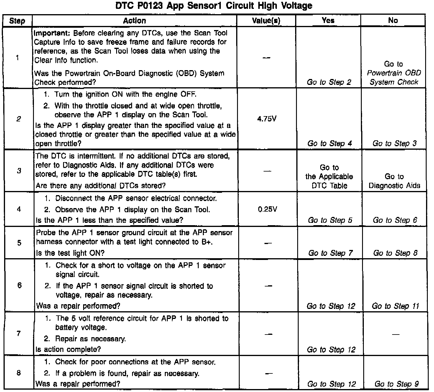 (WOT) position. A P0123 will result if the ground circuit is open or the signal circuit is shorted to voltage.